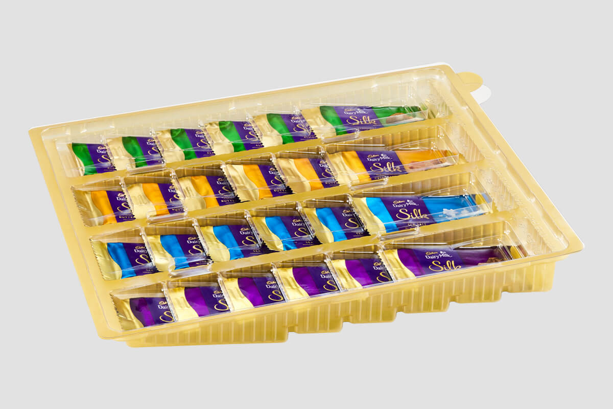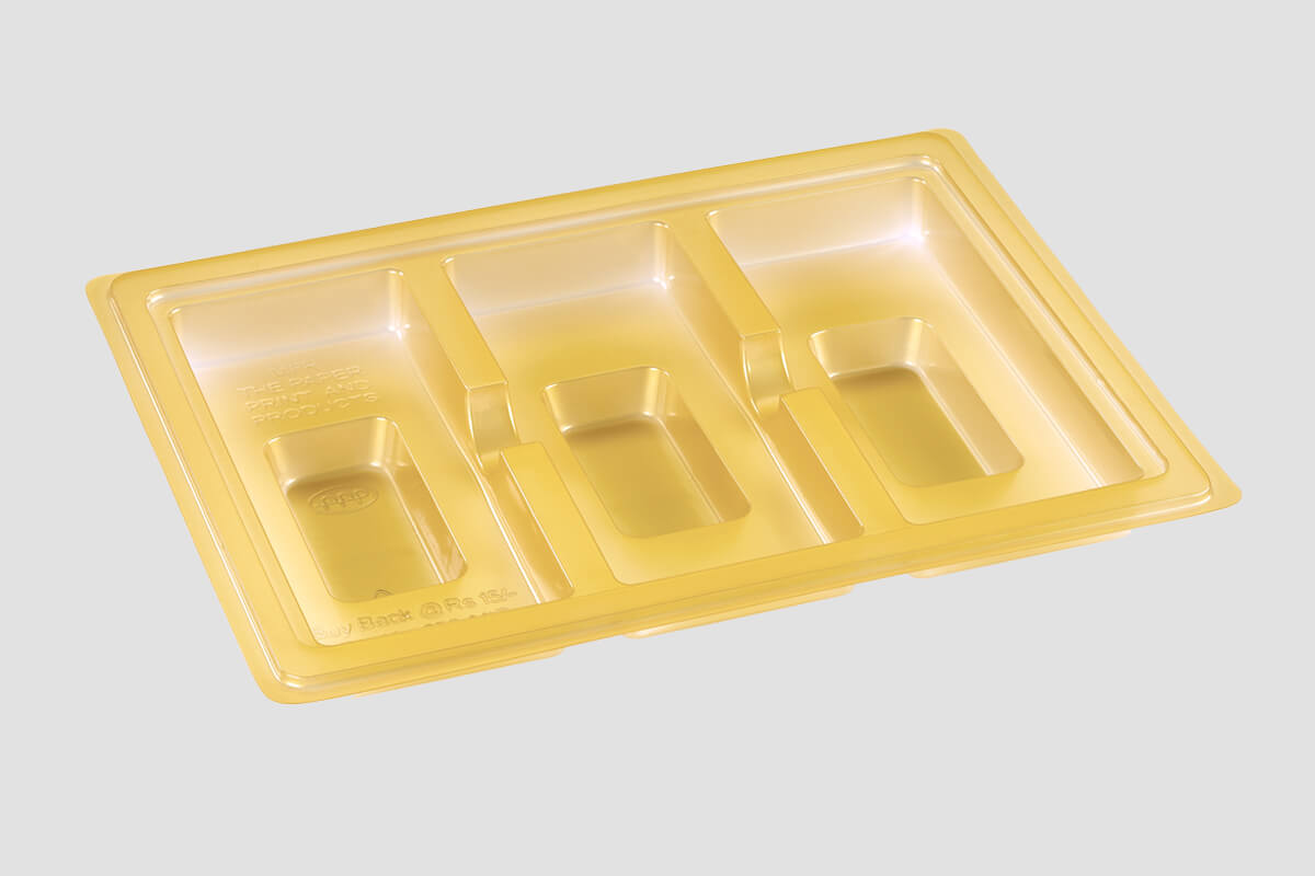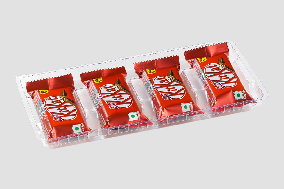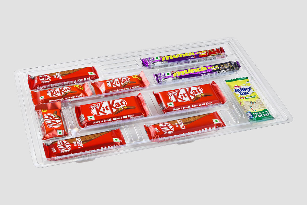 We make trays for biscuits, sweets and chocolates.to ensure that the delicious confectionery that you produce, reaches your consumer intact, while retaining its freshness and nutrition and also ensuring it doesn't contract odours and smells, these trays will prove very useful, economical and attractive.